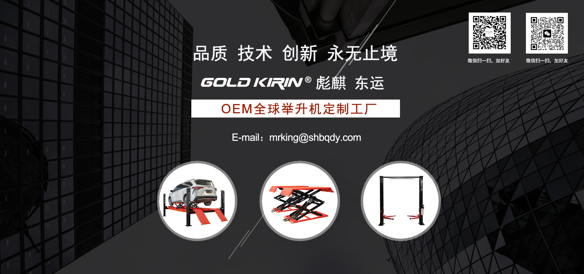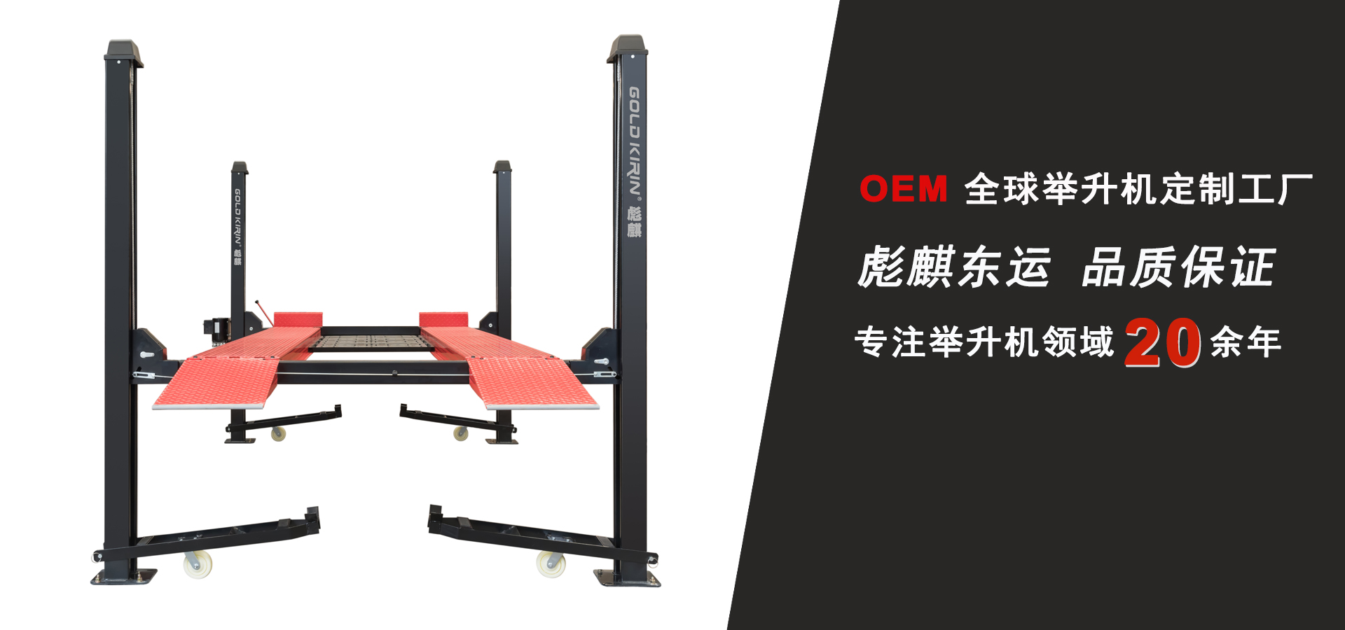 Welcome to GOLD KIRIN 紹興市東運(yùn)機(jī)械有限公司 杭州灣,中國(guó)國(guó)家戰(zhàn)略“一帶一路”的經(jīng)濟(jì)腹地,集聚著具有國(guó)際領(lǐng)先水平的汽車(chē)及關(guān)鍵零部件、智能電氣、機(jī)械制造、高端裝備制造等一大批新產(chǎn)業(yè)集群。 距離連接杭州灣嘉紹大橋的S9蘇臺(tái)高速、S24紹諸高速2.5公里處,這里是紹興市東運(yùn)機(jī)械有限公司和紹興彪麒機(jī)械科技有限公司的坐落地。 GOLD KIRIN?彪麒 東運(yùn)是專(zhuān)注研發(fā)生產(chǎn)舉升設(shè)備、自動(dòng)涂裝設(shè)備、電腦洗車(chē)設(shè)備的設(shè)備制造商。公司堅(jiān)持“追求完美、品質(zhì)取勝”的質(zhì)量方針,全面推行ISO9001:2000國(guó)際質(zhì)量管理標(biāo)準(zhǔn)體系,企業(yè)大部分產(chǎn)品已通過(guò)“CE”認(rèn)證. |